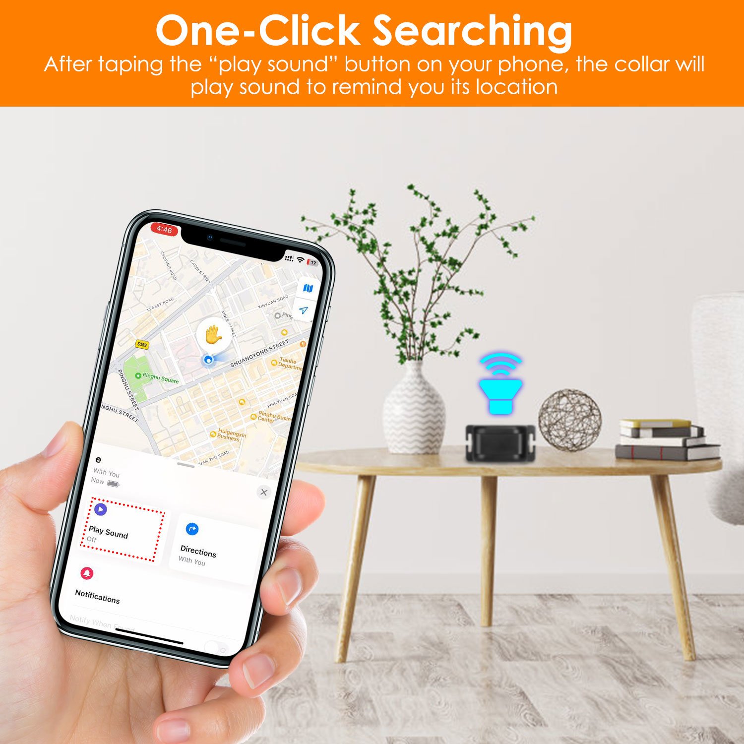 *Real-Time GPS Location Monitoring*:Built-in smart GPS tracker chip provides unique lost prevention function,the dog collar receiver can be simply connected to the 'Find My' app(Only fit for IOS Phone,Pad,Pod). In this app,you are able to monitor every step of your dogs on your phone,and it will push real-time notification when your dog leaves the phone so as you can quickly locate them when they wander off or get lost. Besides,you can preset your house location as a specific place,the app won’t push any reminders when your dog is in your preset location.