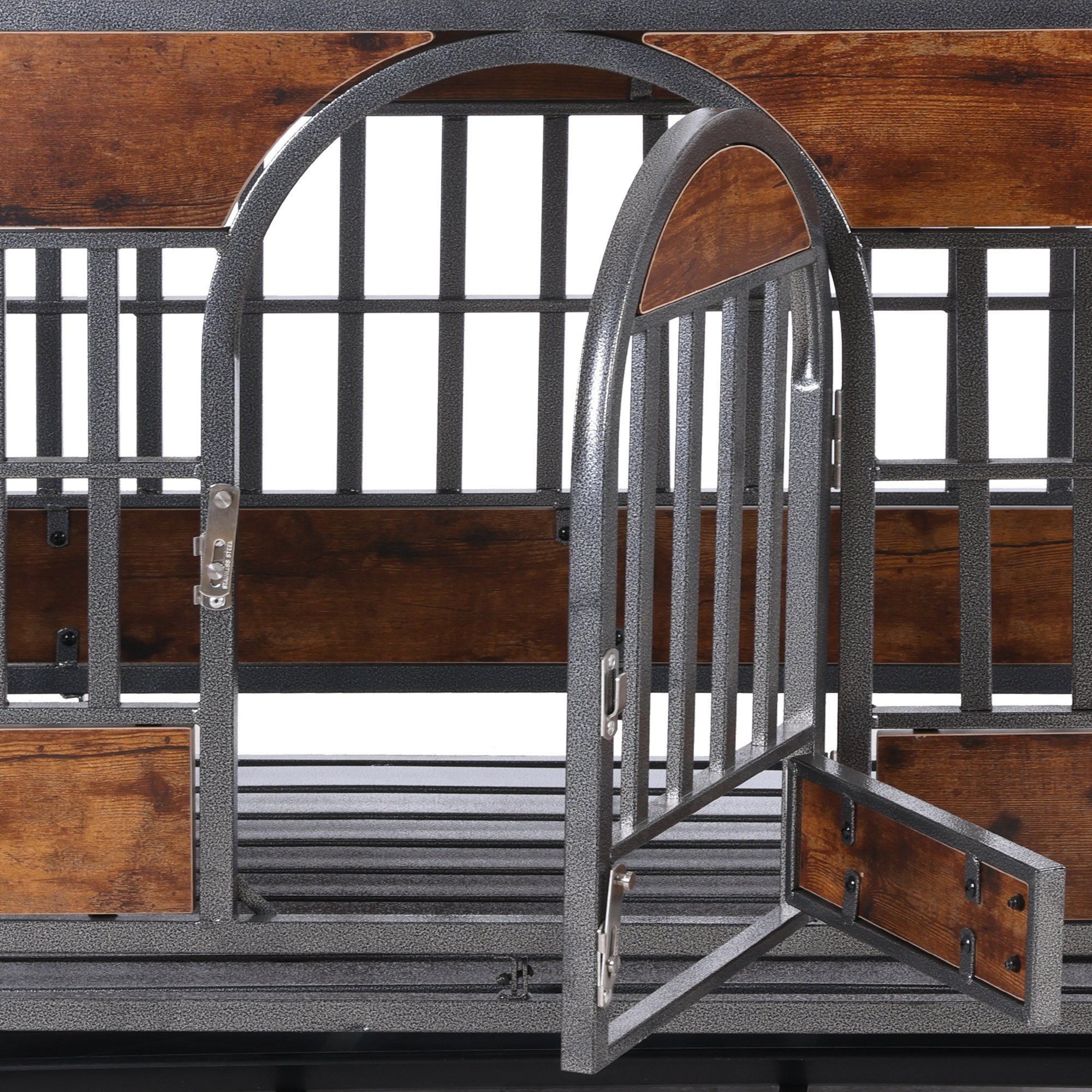 37in Heavy Duty Dog Crate, Furniture Style Dog Crate with Removable Trays and Wheels for High Anxiety Dogs