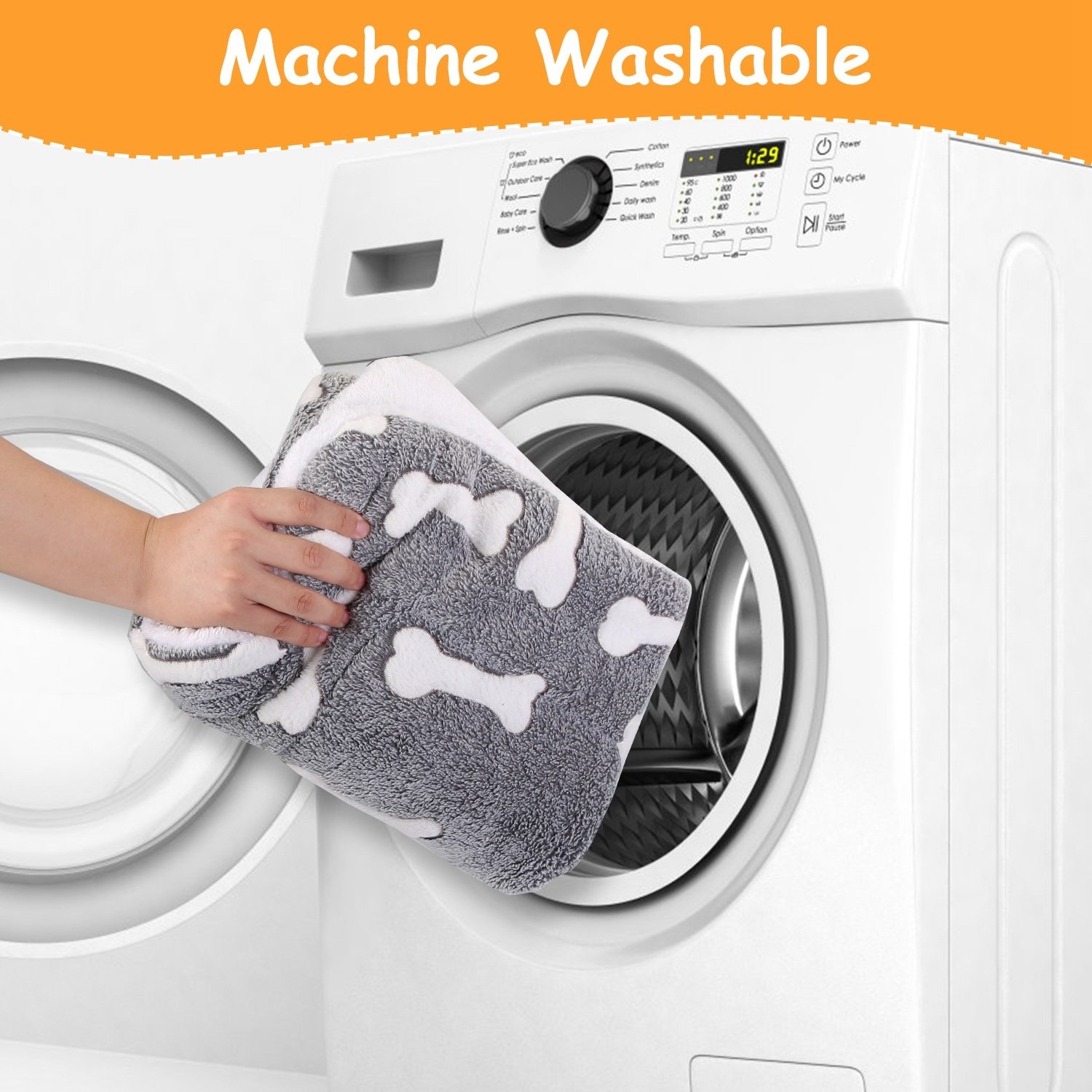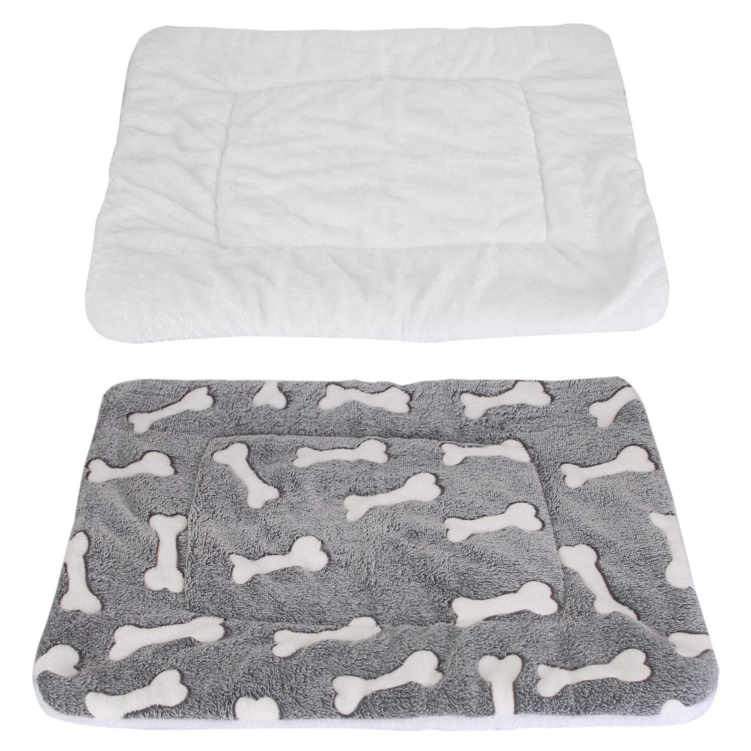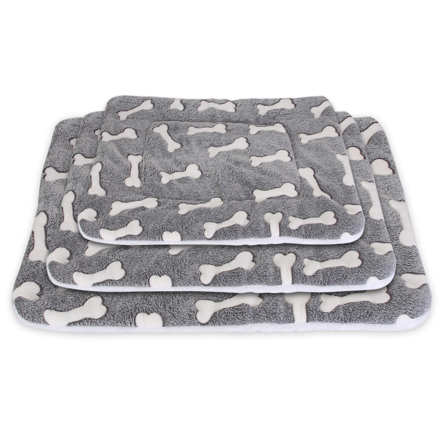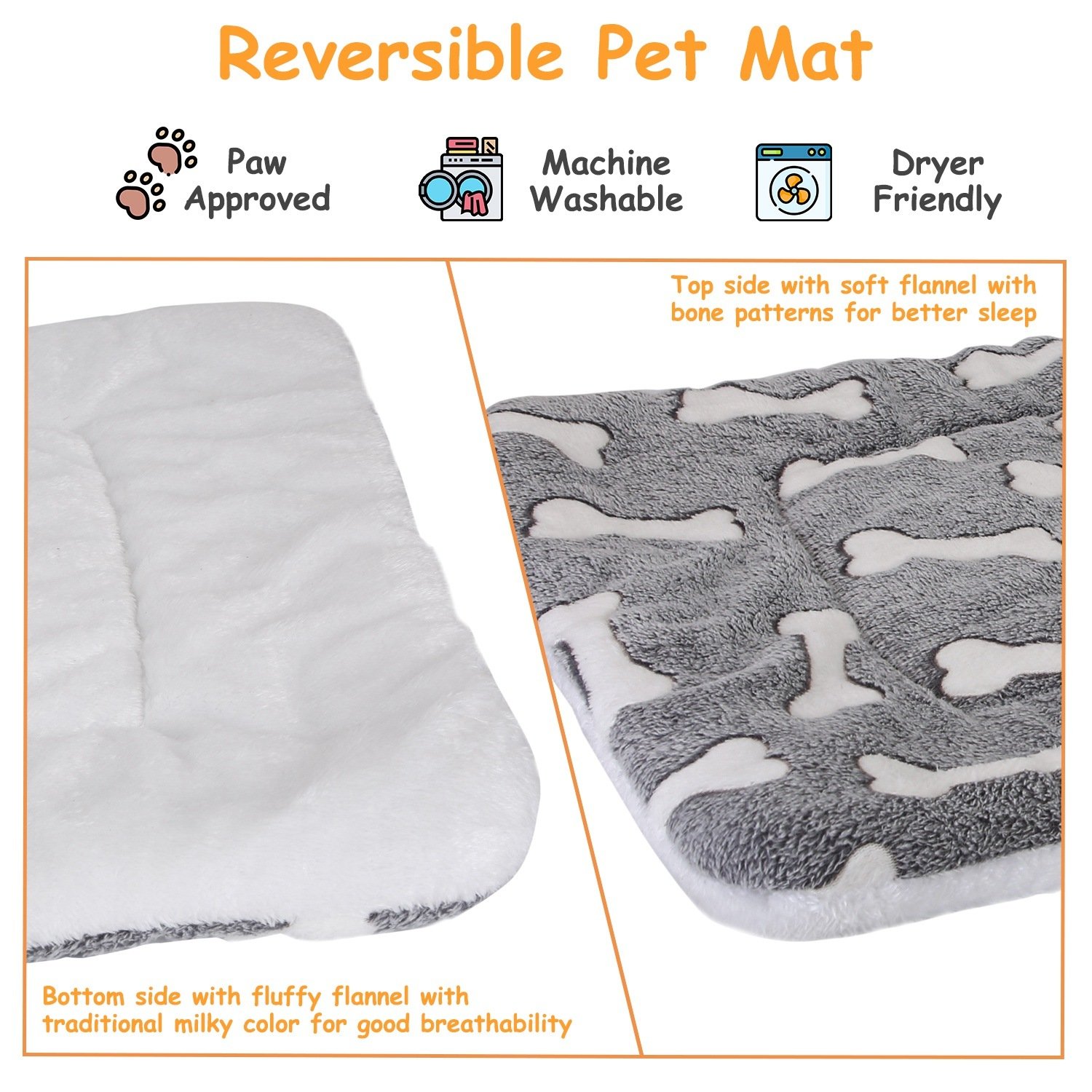 Home > Dog Bed Mat Comfortable Flannel Dog Crate Pad Reversible Cushion Carpet Machine Washable Pet Bed Liner with Bone Patterns