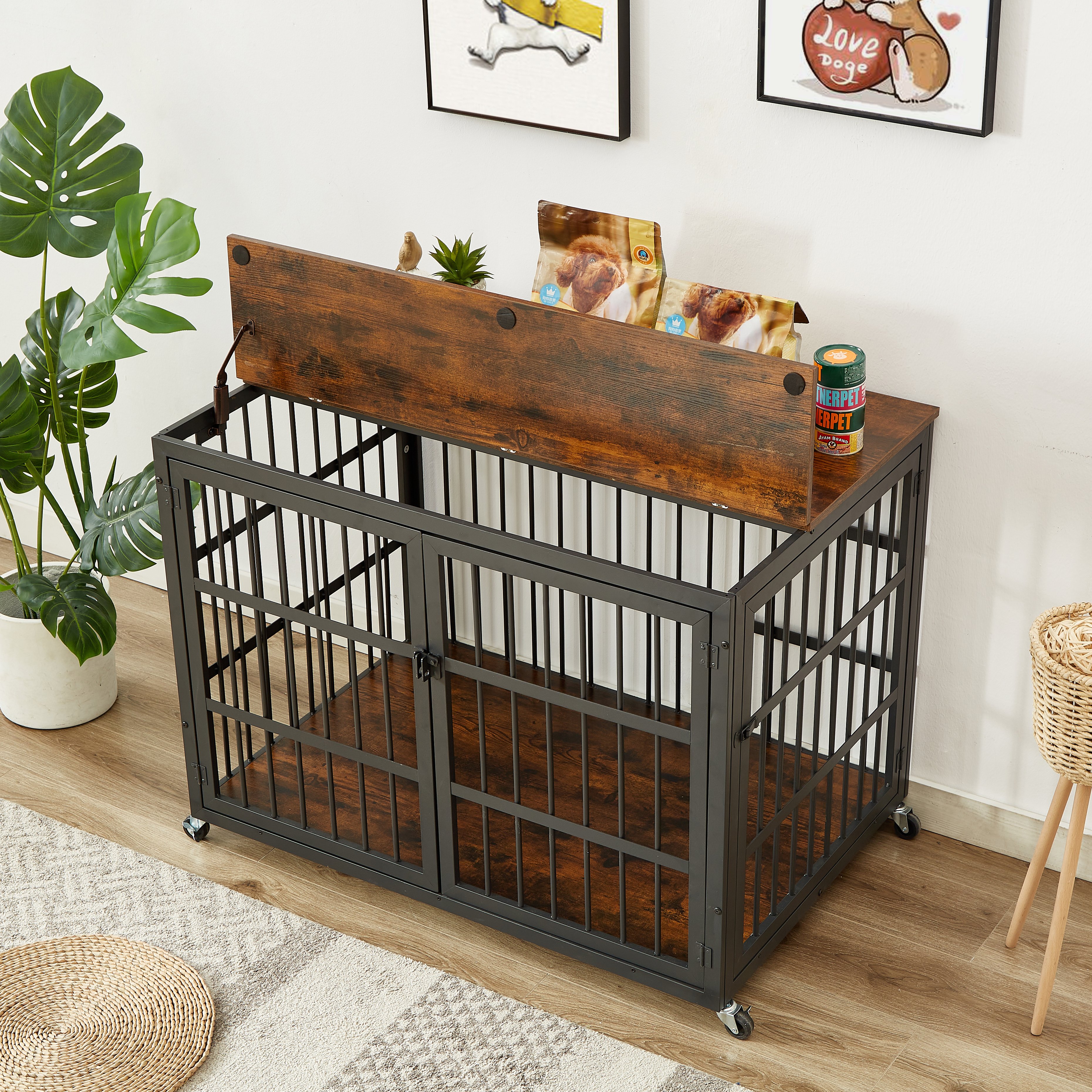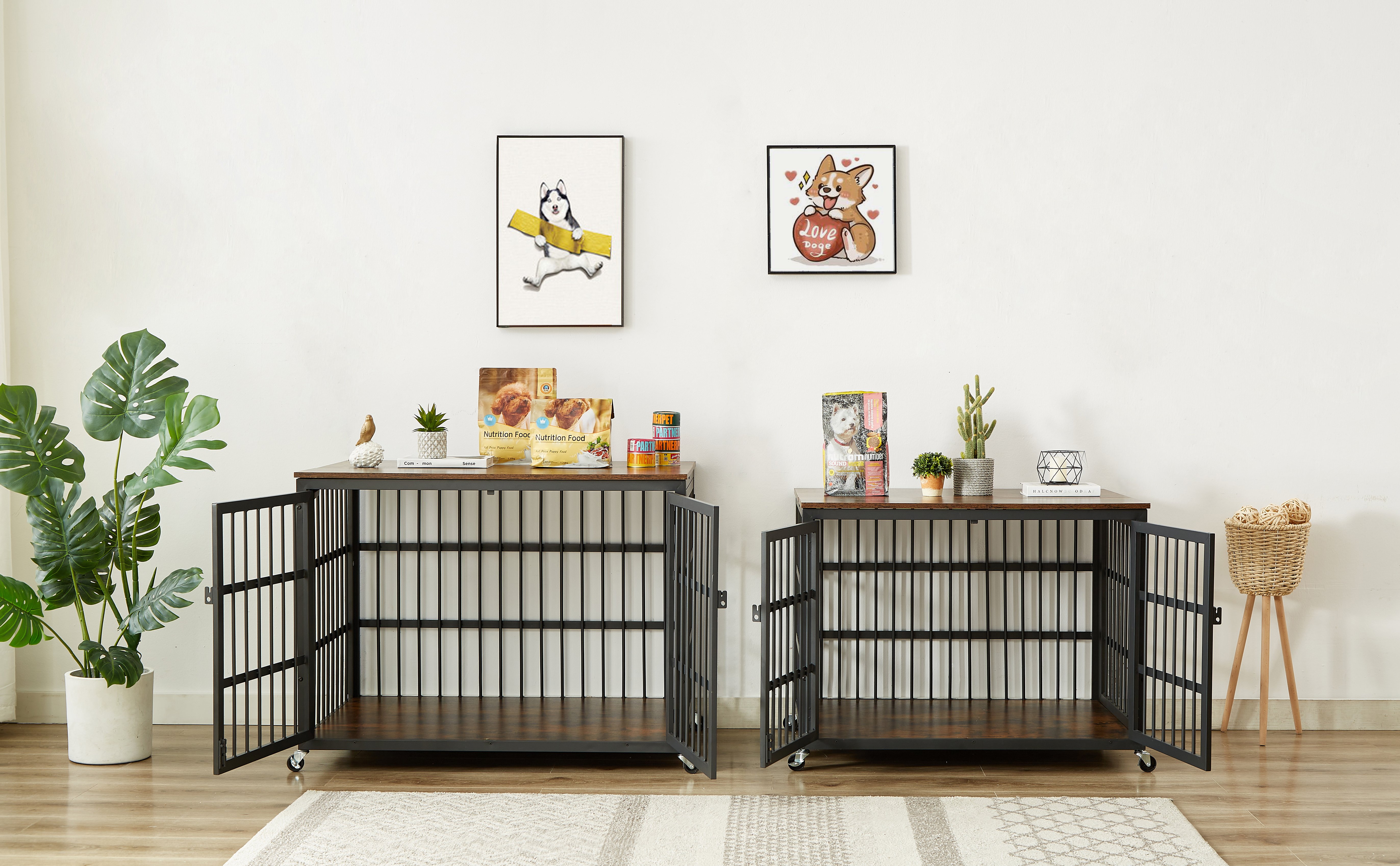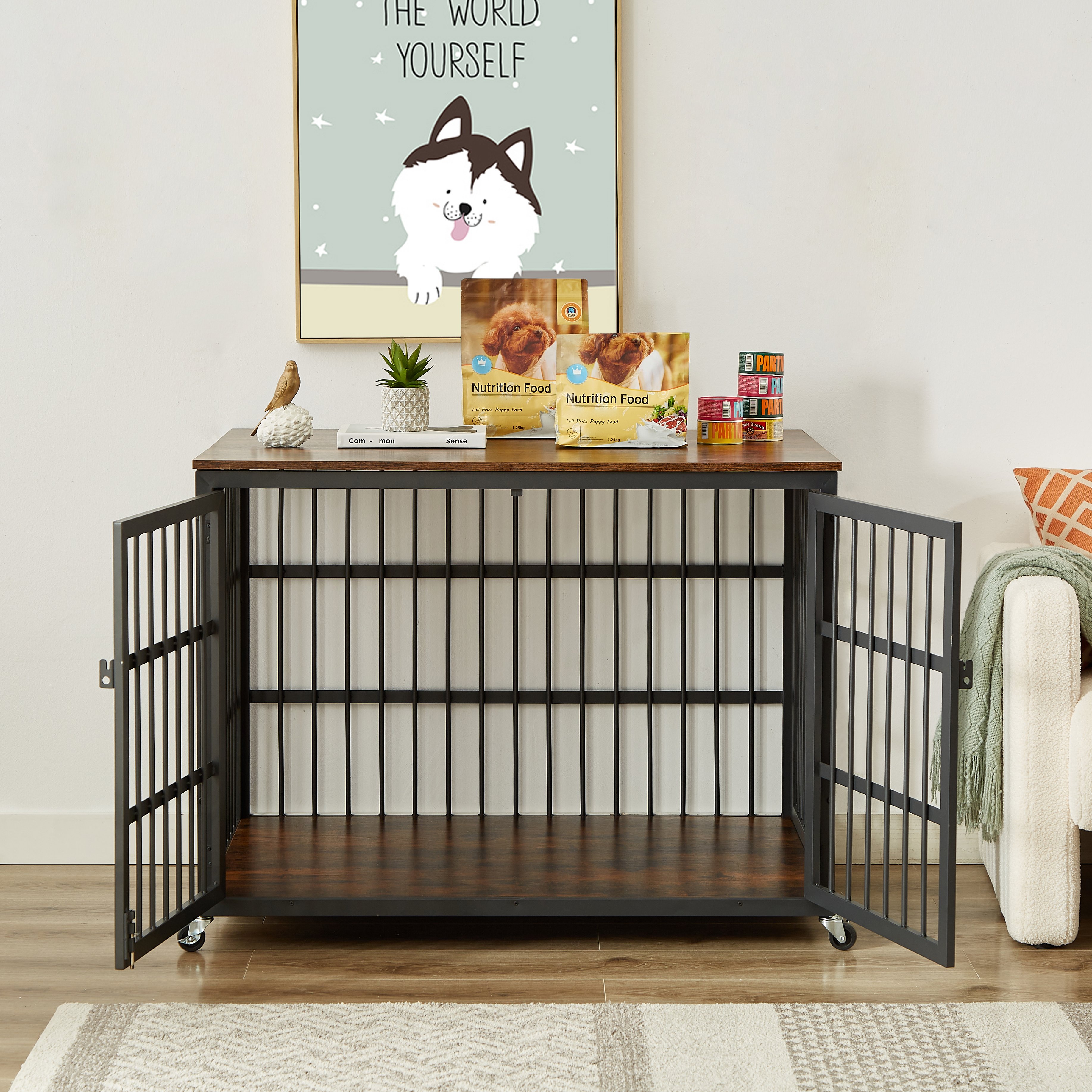Home > Furniture style dog crate wrought iron frame door with side openings, Grey, 43.3''W x 29.9''D x 33.5''H.