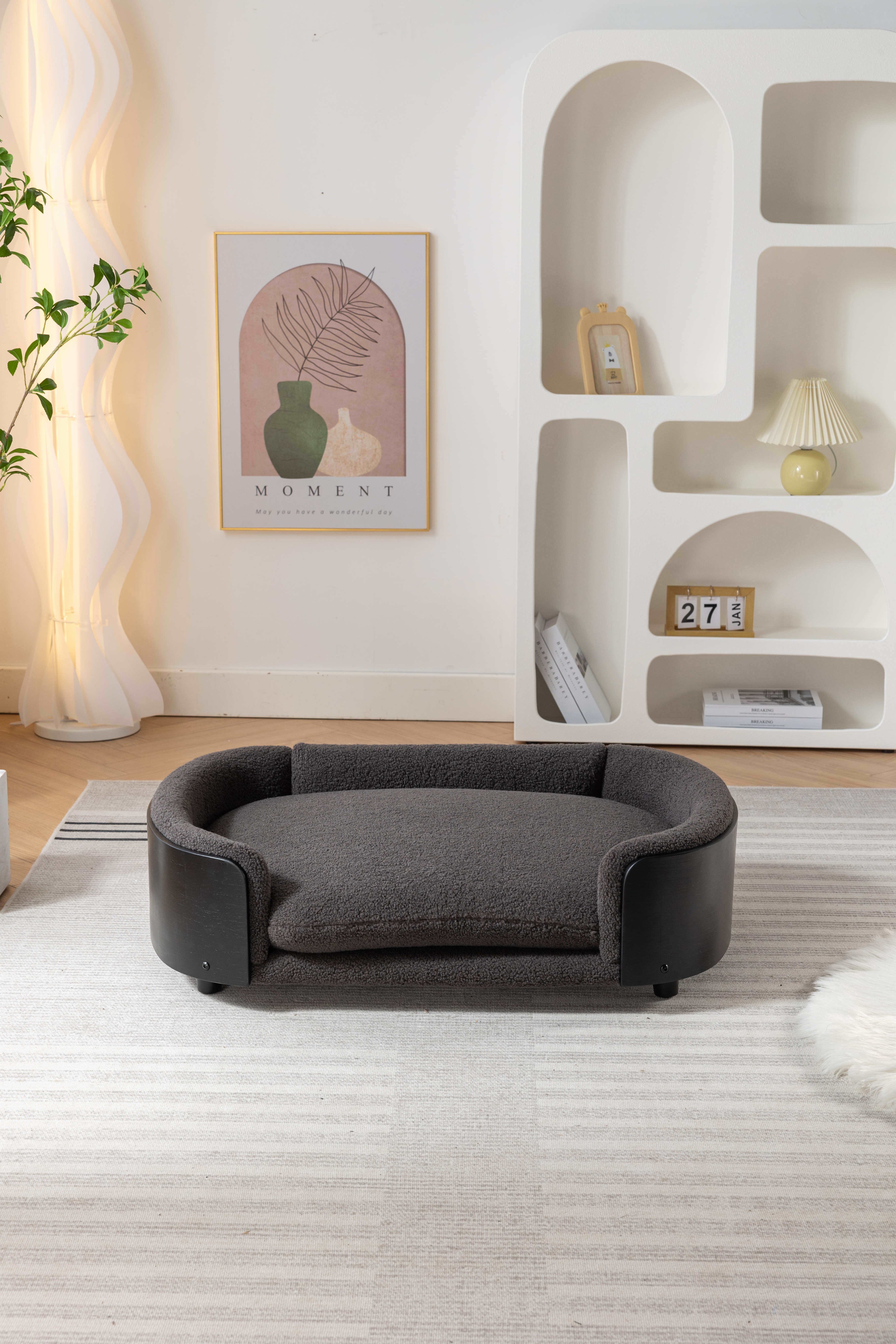 Scandinavian style Elevated Dog Bed Pet Sofa With Solid Wood legs and Black Bent Wood Back, Cashmere Cushion,Large Size